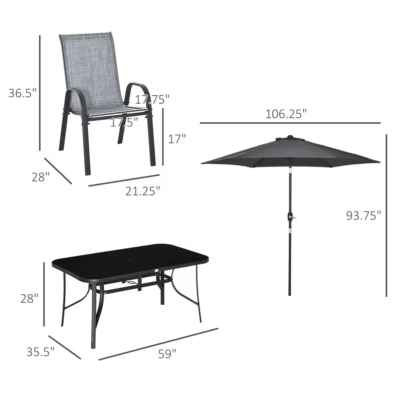 Horizon Kit shapes a space for group gatherings. The table supports shared meals and conversations. Five chairs allow comfortable guest placement. The proportions maintain a harmonious appearance. The set suits regular outdoor use.